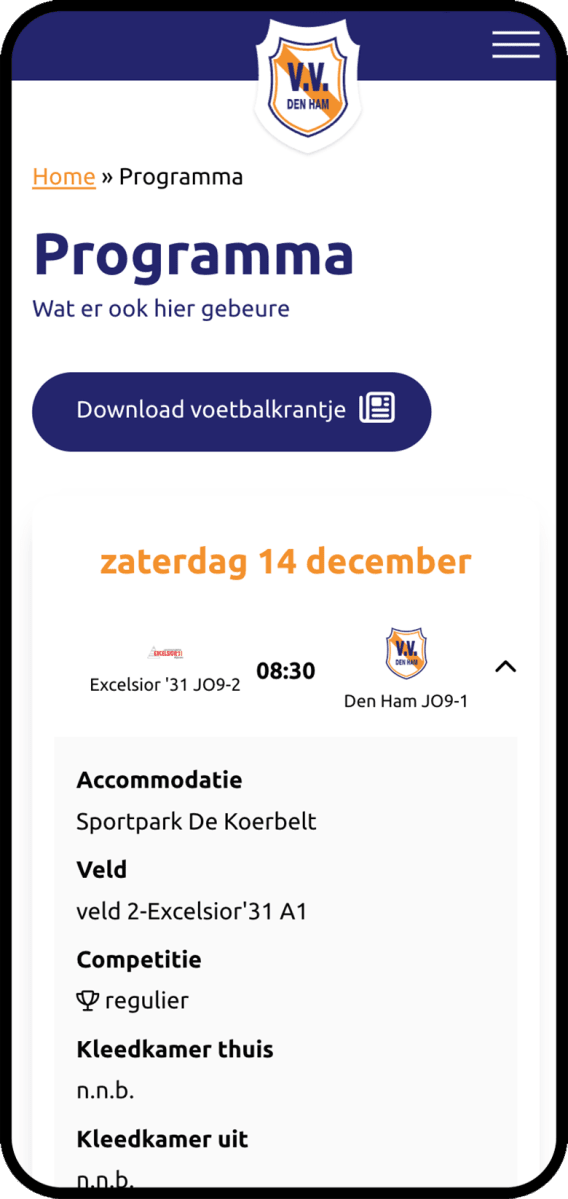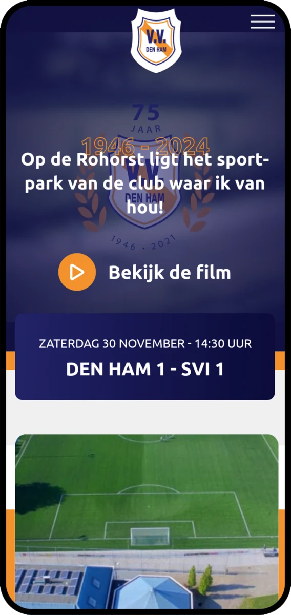 Op de vernieuwde website vinden leden en supporters snel de informatie die ze nodig hebben. De uitstraling sluit aan bij de ambities van VV Den Ham. Dankzij het gebruiksvriendelijke beheer kan de website eenvoudig actueel worden gehouden.