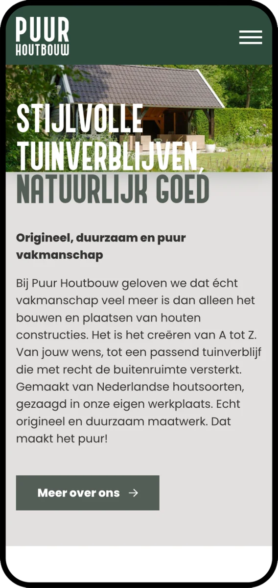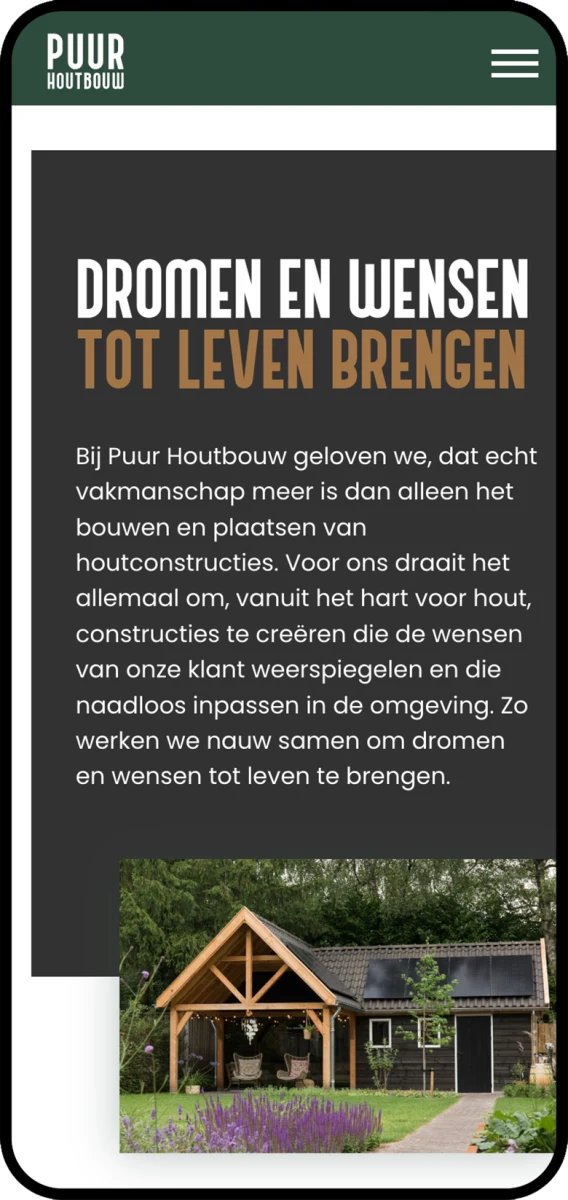 Voor Puur Houtbouw mochten we deze website ontwikkelen en hielpen we mee met de naamontwikkeling en teksten.